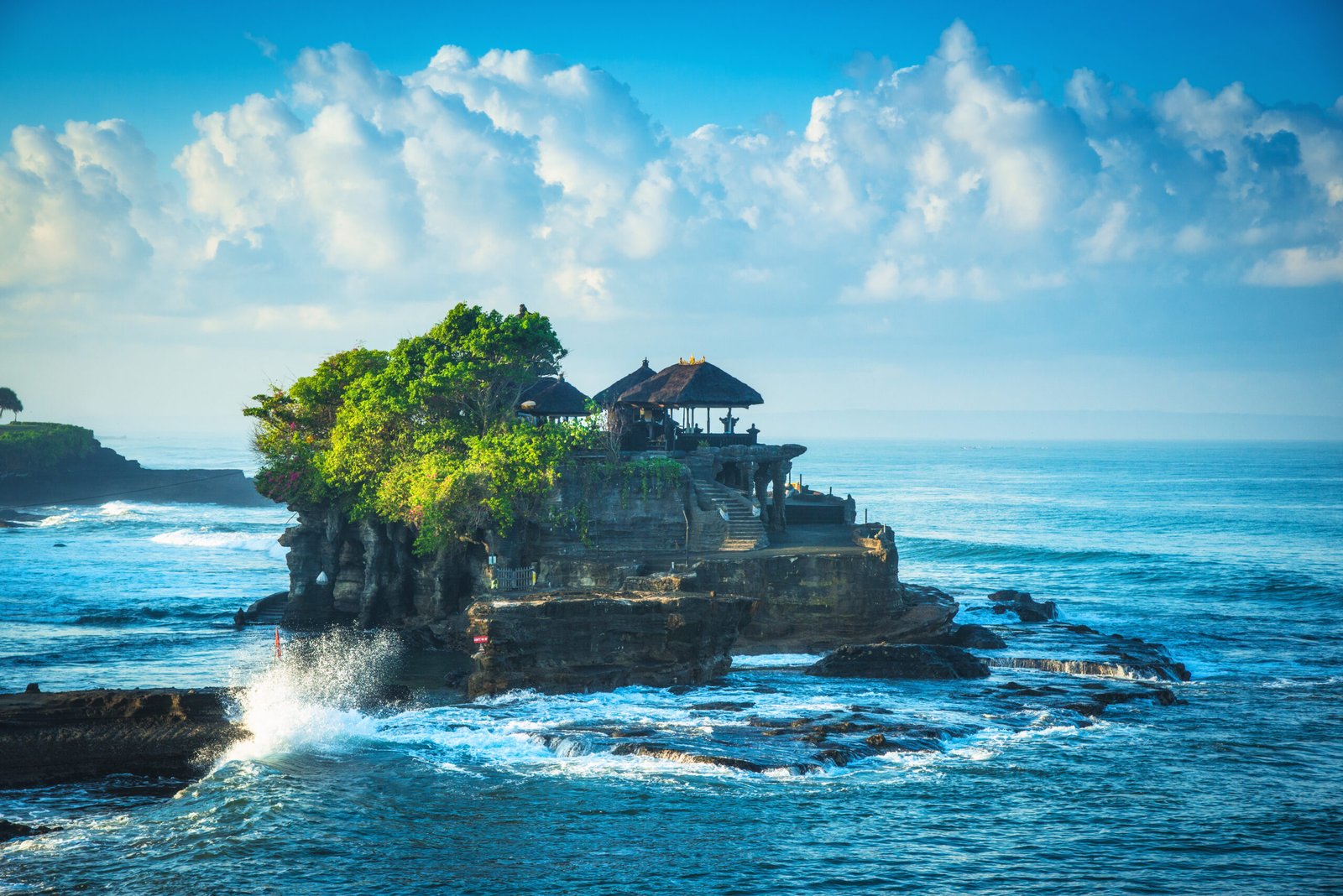 • Tanah Lot Temple: Tanah Lot Temple is one of Bali’s most important landmarks, which is famed for its unique off shore setting and sunset backdrops. An ancient Hindu shrine perched on top of an outcrop amidst constantly crashing waves.